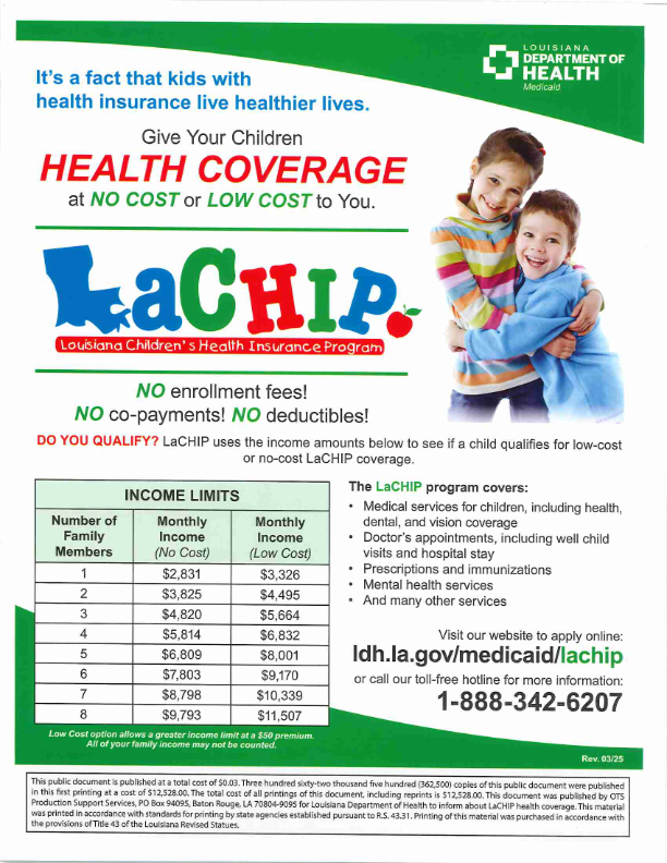 LaCHIP LaCHIP LaCHIP Do you qualify? LaCHIP, Louisiana Children’s Health Insurance Program, uses the income amounts listed to see if a child qualifies for low-cost or no-cost LaCHIP coverage.Fullscreen Mode Click here to download the form